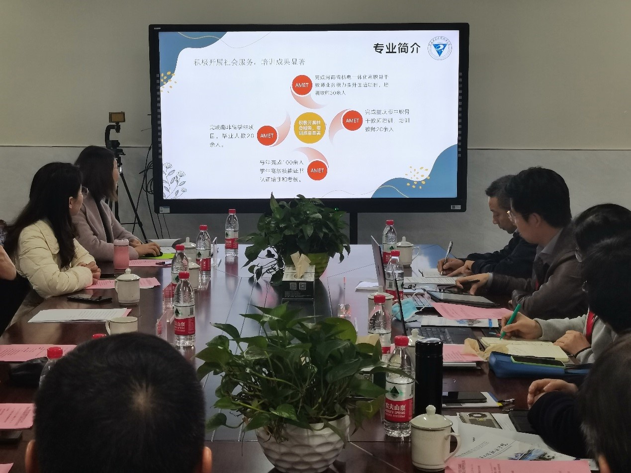 叶勇代表学校对评估组一行表示热烈欢迎并介绍学院机电一体化技术专业实训室建设情况、“双师型”师资培养、发展情况。副院长王勇从专业教学资源建设、学生在专业对口企业顶岗实习、就业与职业发展情况进行详细讲解,专业主任易文翠就课程体系构建、教学团队建设、展示机电一体化SGAVE项目实施与探索等内容进行汇报,展示了丰硕的教学成果。专业教师在顶岗学习、海外培训,课程资源建设、竞赛与科研参与度等方面接受访谈评估。