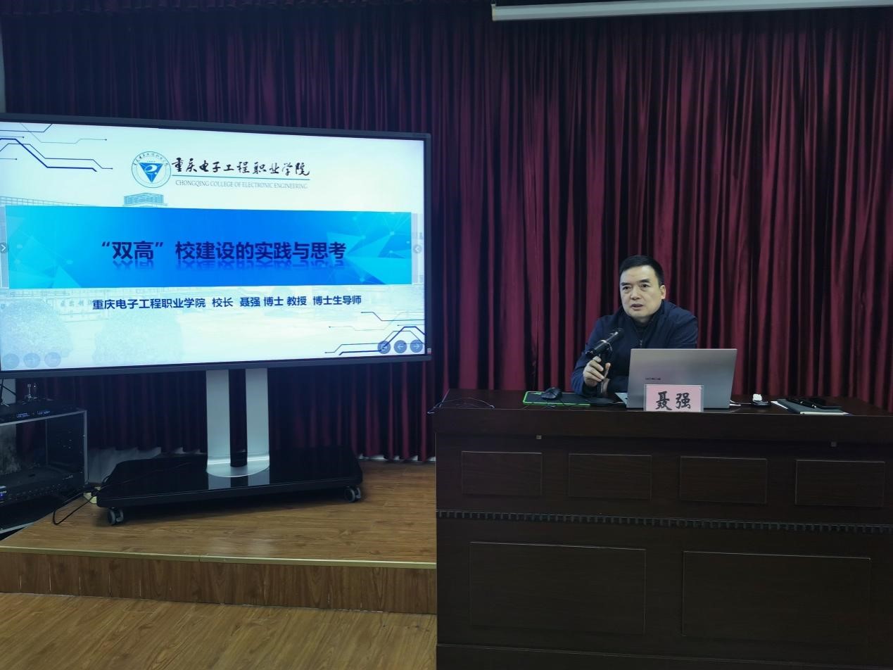 聂强校长在致辞中代表学校对宜宾职业技术学院林世全书记一行表示热烈欢迎。他说,很高兴在职业教育发展的关键时期,迎来宜宾职业技术学院各位领导到我校进行职业教育相关知识的分享。他介绍了我校的基本情况及近年来所取得的成绩,重庆电子工程职业学院作为电子信息类院校,学科专业与宜宾职业技术学院十分接近,希望能进一步加强两校之间的交流与合作,共同为中国职业教育的发展做出贡献。同时,他希望各位老师要做好自我防护,注意安全,在三天的学习时间里有所收获。