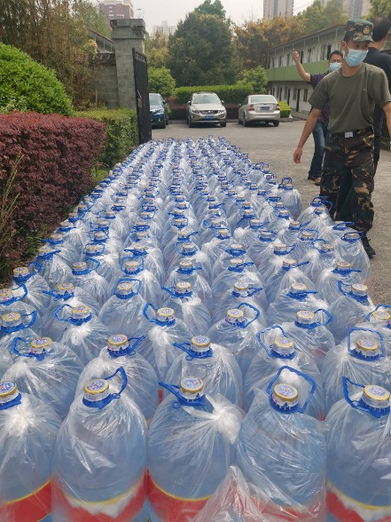 为助力我校疫情防控工作,数字媒体学院休学创业并复学的广告2001班刘灿同学与环艺1703班校友唐富豪向我校捐赠1000桶15升装饮用水。