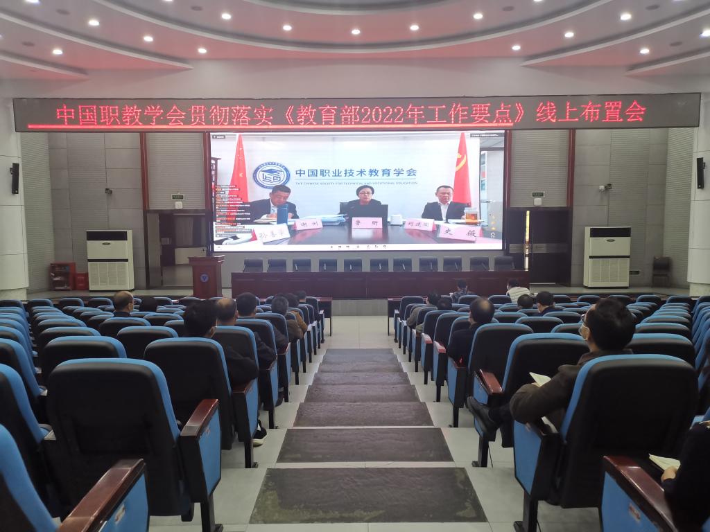 2022年3月21日下午2点30分,我校组织教务处、科研与社会服务处、人力资源处、质量管理中心、双高办等部门负责人以及各二级学院院长、副院长在博远厅集中收看了中国职教学会贯彻落实《教育部2022年工作要点》线上布置会,学校党委副书记、校长聂强教授参加了此次会议。