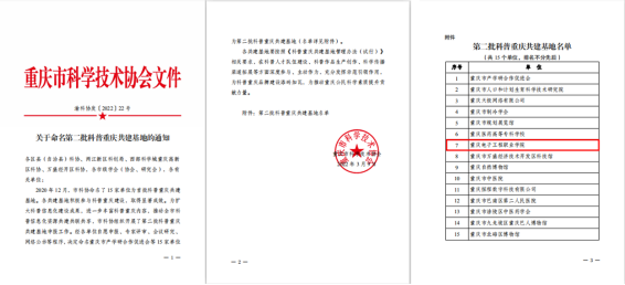 近日,重庆市科学技术协会公布了第二批科普重庆共建基地名单,经市科协组织申报、专家评审、党组审议,网上公示等程序,我校被重庆市科学技术协会命名为第二批科普重庆共建基地。