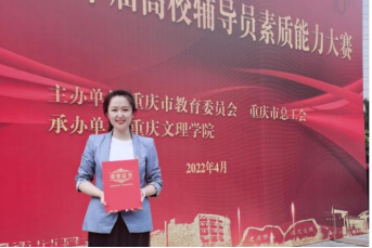 据悉,本次大赛在重庆文理学院举办,由本科院校组、高职高专院校组共90名辅导员参加,以基础知识测试、案例研讨、谈心谈话三个环节进行比拼。在大赛中王菡老师以思路敏捷、亲和热情、立足日常工作解决学生实际问题出发,攻坚克难,沉着应战,充分展示了我校辅导员良好的职业素养和精神风貌。