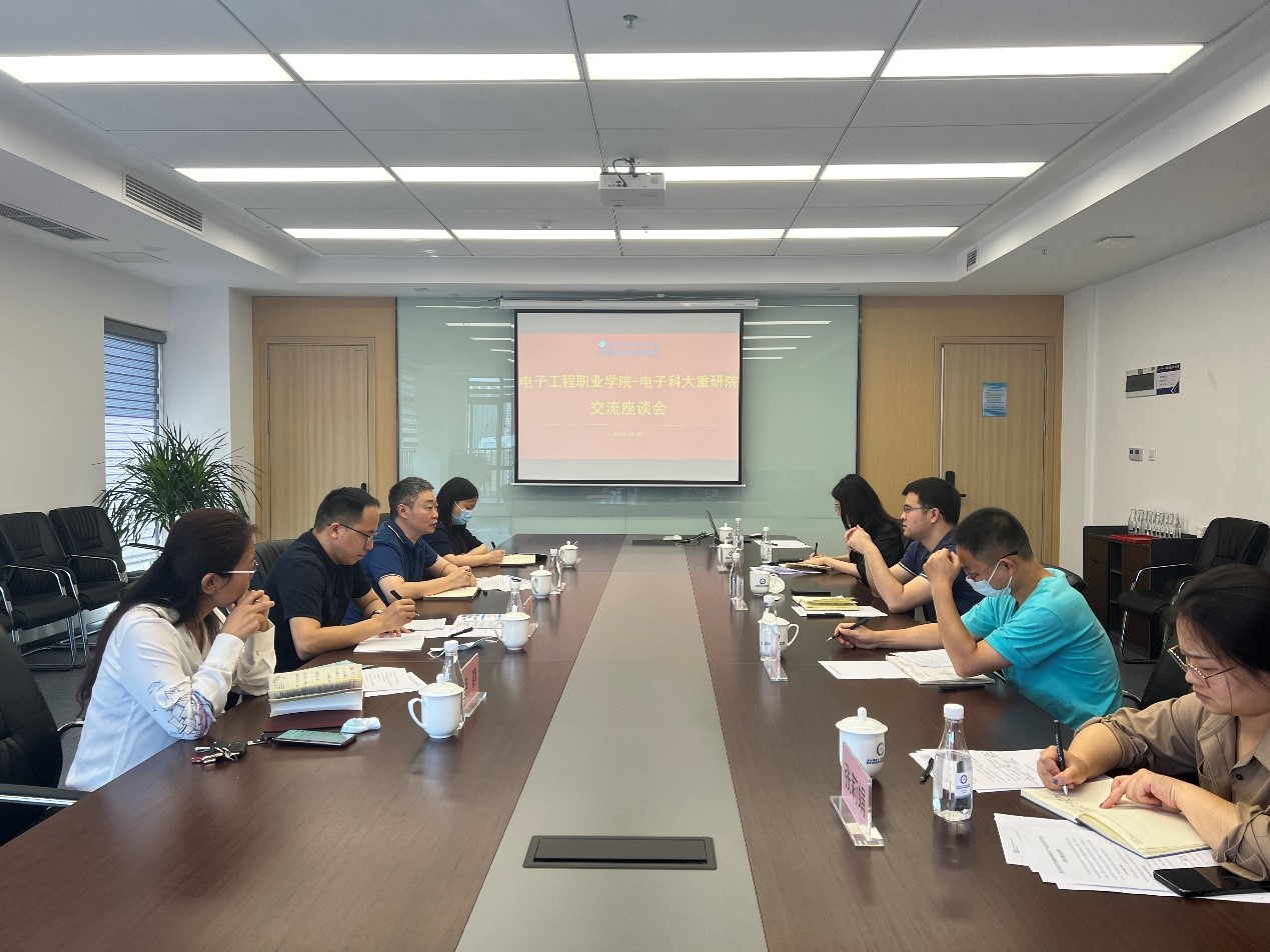 在随后的座谈会上,成电重研院副院长刘益安对熊德明一行表示欢迎。科研产业部主任苑蕾介绍了研究院的科研情况和其它业务重点。熊德明介绍了学校及电子与物联网学院基本情况、科研方向、现代产业学院建设情况。电子与物联网学院林涛、卢静和冯筱佳分别介绍了集成电路系、硅光子开云电子平台_开云(中国)与技术创新中心、社会培训等工作。