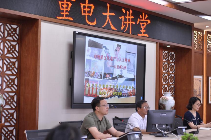 为贯彻落实学校职教活动周相关工作要求,2022年5月25日,由通识教育与国际学院主办、“川江号子”非遗传承工作坊承办的“重电大讲堂”系列讲座在南校区2307丝路国际会议厅开讲。文化与美育教研室全体教师及川江号子工匠工坊全体学生参加讲座。