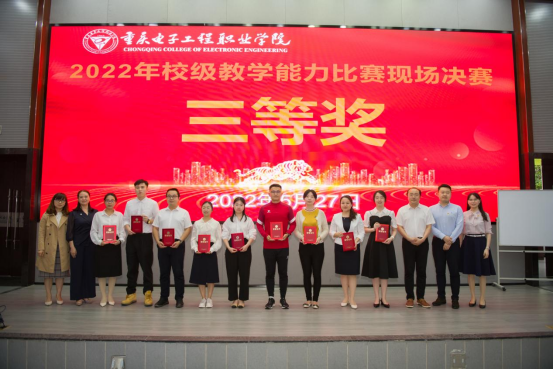 为深入贯彻全国职业教育大会精神,按照《国家职业教育改革实施方案》《职业教育提质培优行动计划(2020-2023年)》等部署,坚持“以赛促教、以赛促研,以赛促建、以赛促改”的总体思路,5月27日,由我校教务处、校工会、人力资源处联合举办的重庆电子工程职业学院2022年教师教学能力比赛现场决赛,在学校博远厅和智慧教室14栋301同时进行。学校校长聂强、党委副书记龚小勇、副校长兼工会主席谢义华、教务处处长童世华、人力资源处处长周鑫、工会常务副主席唐莉、教师发展中心主任廖世萍、教务处副处长兼双高办常务副主任代才莉、教务处副处长张慧敏、人力资源处副处长黄祎作为嘉宾出席比赛现场。本次比赛邀请了重庆科技学院教务处处长柏伟教授,重庆师范大学职教师资学院院长夏金星教授,重庆师范大学贺应根教授及兄弟院校国赛一等奖获得者担任评委。
