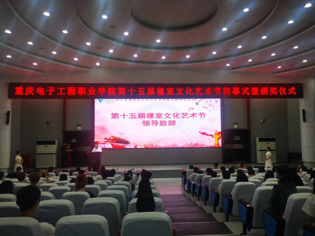 2022年5月26日,重庆电子工程职业学院第十五届寝室文化艺术节闭幕式暨颁奖仪式在博远厅顺利举办。重庆电子工程职业学院党委委员、副校长冉学农、党委学生工作部部长何光明、副部长蒋斌、新大正物业公司经理杨小琴以及各二级学院领导莅临现场,校级各学生组织、各二级学院主席团成员、生活部、大学生素质教育管理(自律)中心成员参加本次大会。
