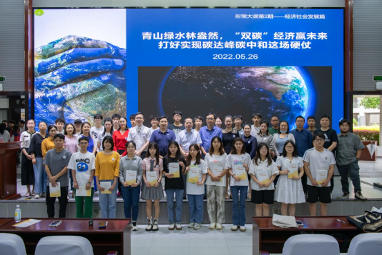 本次大课由肖凌云、杜星、余秀平三位老师合作授课,授课主题为“青山绿水林盎然,‘双碳’经济赢未来——打好实现碳达峰碳中和这场硬仗”。大课以习近平新时代中国特色社会主义思想为指导,全面贯彻党的十九大和十九届历次全会精神,充分结合中共中央、国务院印发的《关于完整准确全面贯彻新发展理念做好碳达峰碳中和工作的意见》《2030年前碳达峰行动方案》相关文件,依据形势与政策经济社会发展篇的教学内容,以“追因溯源、战略谋划、明路笃行”为主题主线,系统讲授了“双碳”目标提出背景、主要内容、未来影响等方面内容。