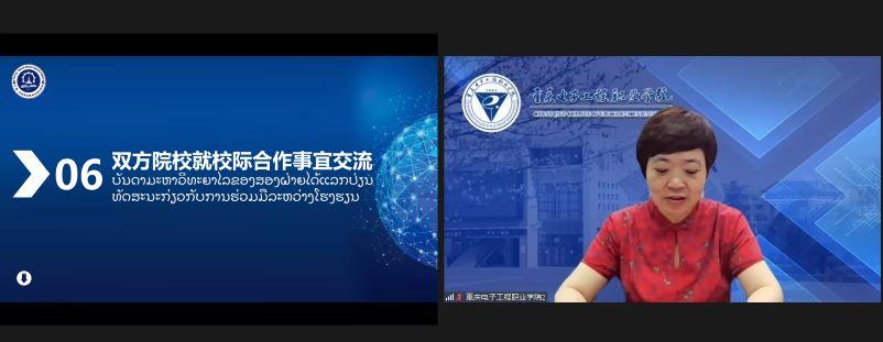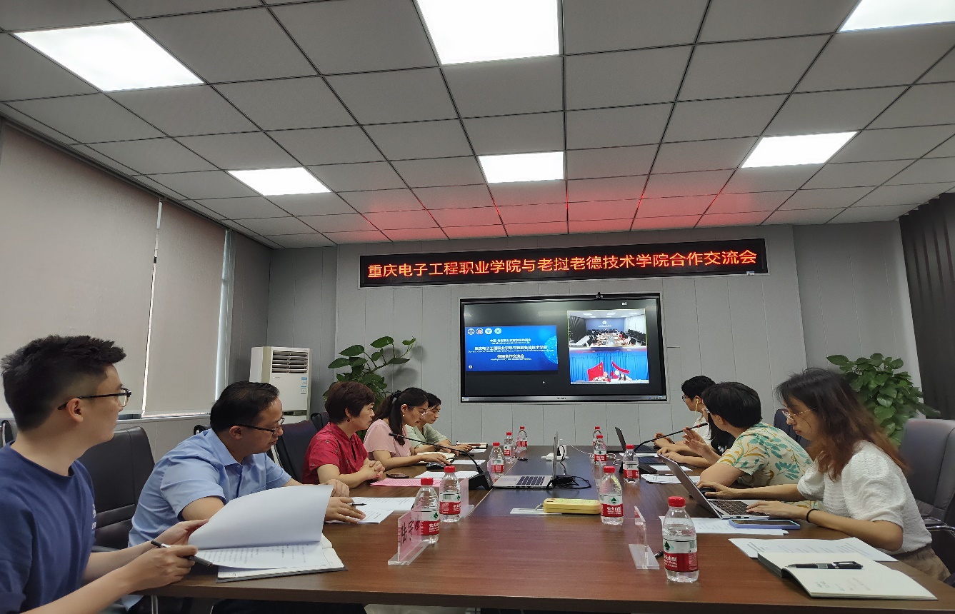 2022年6月9日下午,重庆电子工程职业学院与老挝老德技术学院合作交流会在我校人工智能与大数据学院会议室召开。重庆电子工程职业学院副校长谢义华、国际交流与合作发展处副处长刘影、人工智能与大数据学院副院长邓剑勋,以及老挝老德技术学院校长坎萨威、行政人事部、教务处领导等以线上线下相结合的方式出席了本次会议,会议由中国-老挝职业教育发展共同体副秘书长张艺主持。