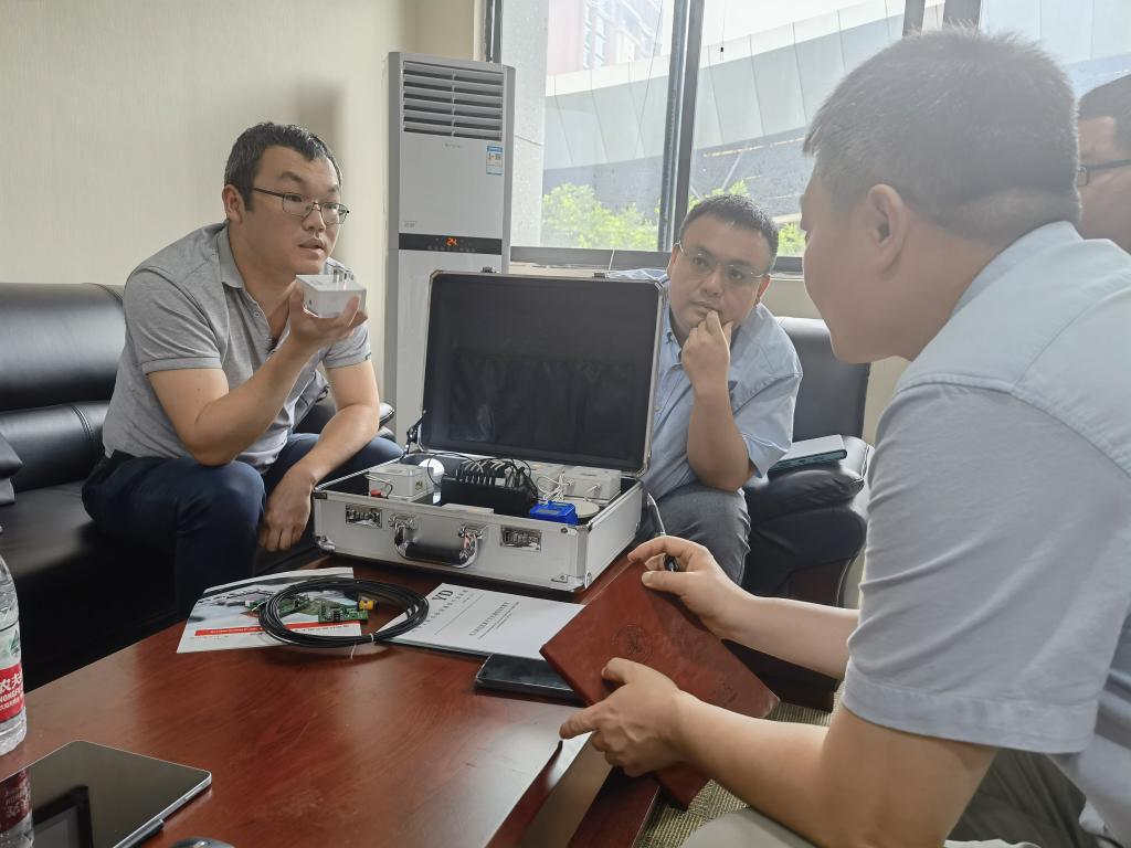 林涛介绍了电子与物联网学院、集成电路专业群、微电子技术专业的发展规划。邬东强介绍了公司发展情况,表达了开展校企合作的意向。公司芯片研发部刘冬经理展示了基于自研国内领先的可见光通信集成电路芯片开展的新一代末端传感网络智慧家庭系统——该系统已应用在全球最大的Li-lot生态社区-万科彩云湖住宅项目中。
