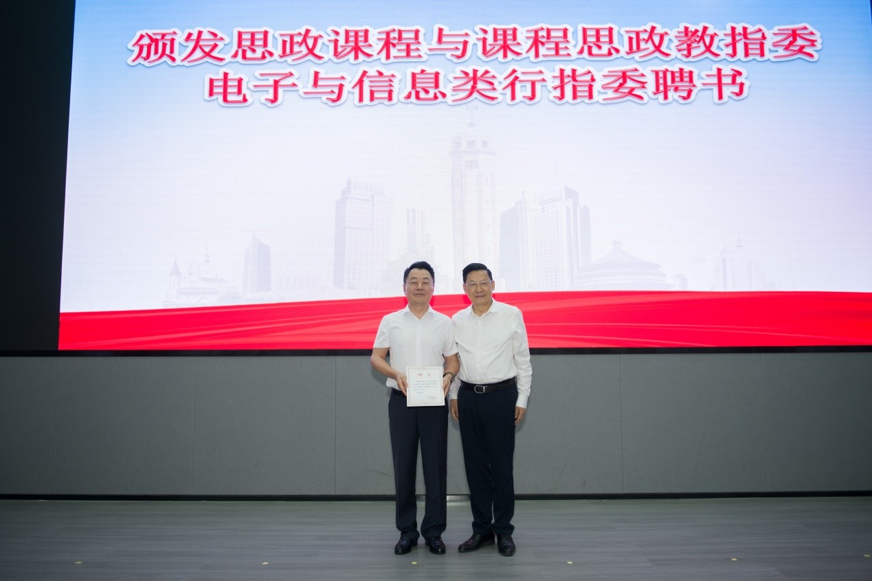 随后,重庆市教育委员会职成教处副处长徐柏泉宣读了思政课程与课程思政教指委、电子与信息行指委成立文件和委员名单。市教委领导分别为思政课程与课程思政教指委、电子与信息行指委委员代表颁发聘书。委员代表们依次上台作了发言,表示将认真履职尽责,积极参与思政课程与课程思政教指委、电子与信息行指委的各项工作,不断推进思政课程与课程思政建设、深耕产教融合,为促进开云电子平台_开云(中国)质量的全面提升而不断奋进。