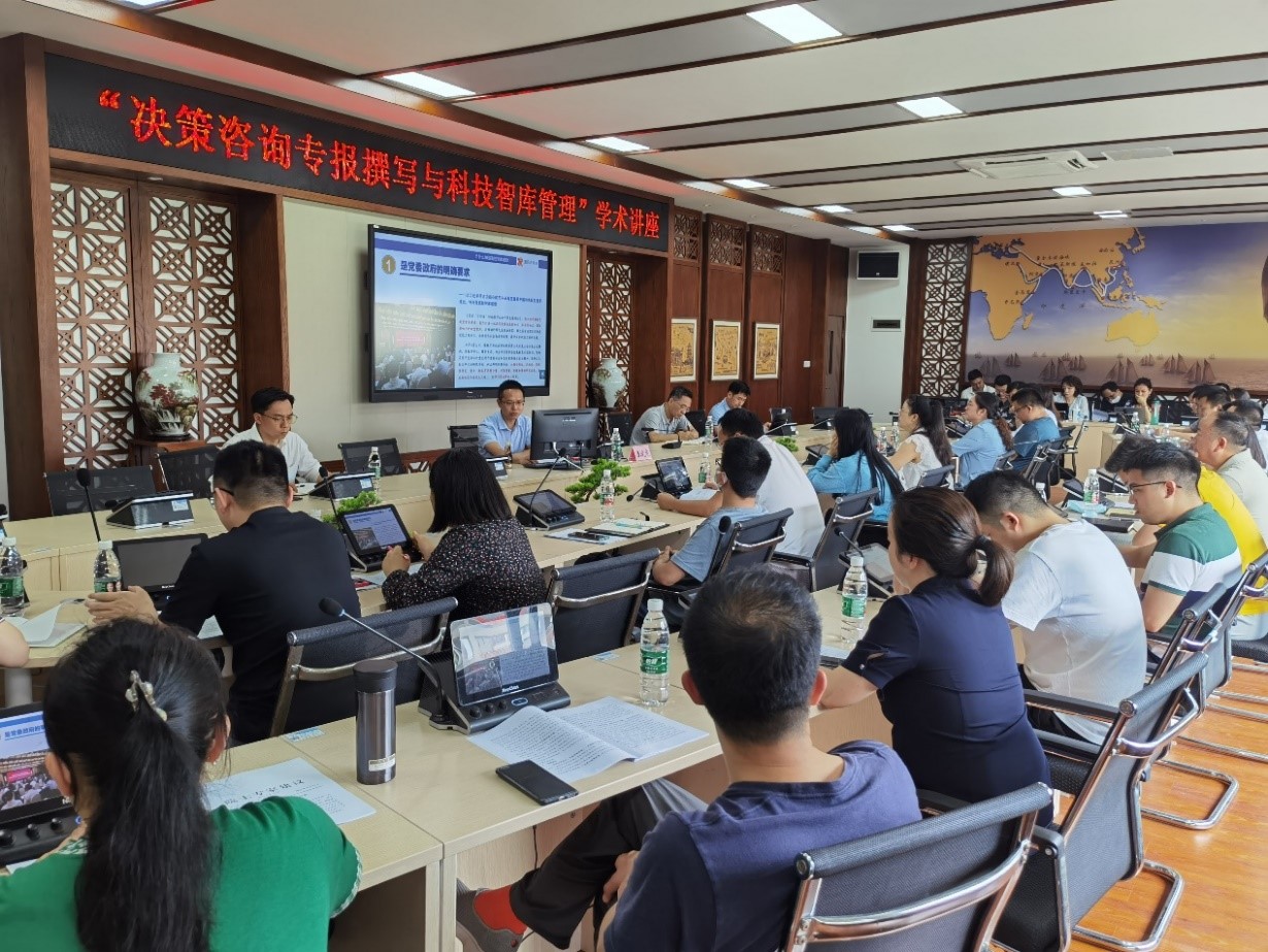 秦定龙研究员从加强高校科技智库建设的重要意义、学术研究与智库研究的区别和联系、各级科技智库建设的现状等方面做了详细介绍,通过分析典型的决策专报案例,深入浅出地解析了科技智库的研究成果,介绍了在资政选题、调研方法、内容提炼、呈现方式等方面撰写决策咨询专报的经验技巧,为我校科技工作者如何撰写决策咨询专报提供了有效路径。同时,秦主任还强调科技工作者除了埋头做科研,还应提高站位,多关注区域经济社会发展,准确把握决策咨询专报撰写时机,运用研究方法,为党委政府解决经济社会发展中的各种问题提供可行性建议,充分发挥科技智库的资政作用。