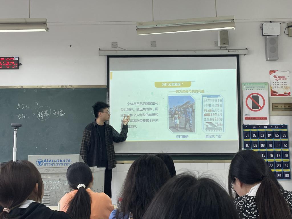 善用“大思政课”,丰富教学形态。习近平总书记指出:“‘大思政课’我们要善用之,一定要跟现实结合起来。”5月的职教活动周,概论教研室组织开展了“大思政课”——优秀学长进课堂活动。邀请优秀校友刘仕荣、胡小锋,以学长身份走进课堂,为学弟学妹们带去了一堂别样的思政课。刘仕荣从疫情防控下社区治理的角度,详细介绍了基层社区党建引领疫情防控工作的情况,使同学们真切地感受到党领导疫情防控的成效与显著优势。他还从“问需于民”、“问计于民”、“问效于民”三个方面分享了基层社区治理的经验做法,使同学们在课程理论学习基础上,进一步深化了对社会现实的认知。胡小锋则从行动、坚持、态度、目标四个方面分享了自己的工作经历和人生经验,勉励同学们努力学习、不断进步。