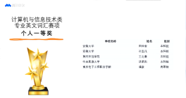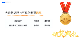 冠军奖由高林教授进行颁奖并进行颁奖典礼总结,我校五位同学取得佳绩,同时还保持了历年最佳水平。累计获得总决赛一等奖2名(其中一等奖冠军1名),二等奖1名,三等奖2名。其中,大数据处理与可视化赛项与专业英文词汇赛项一等奖各1名。