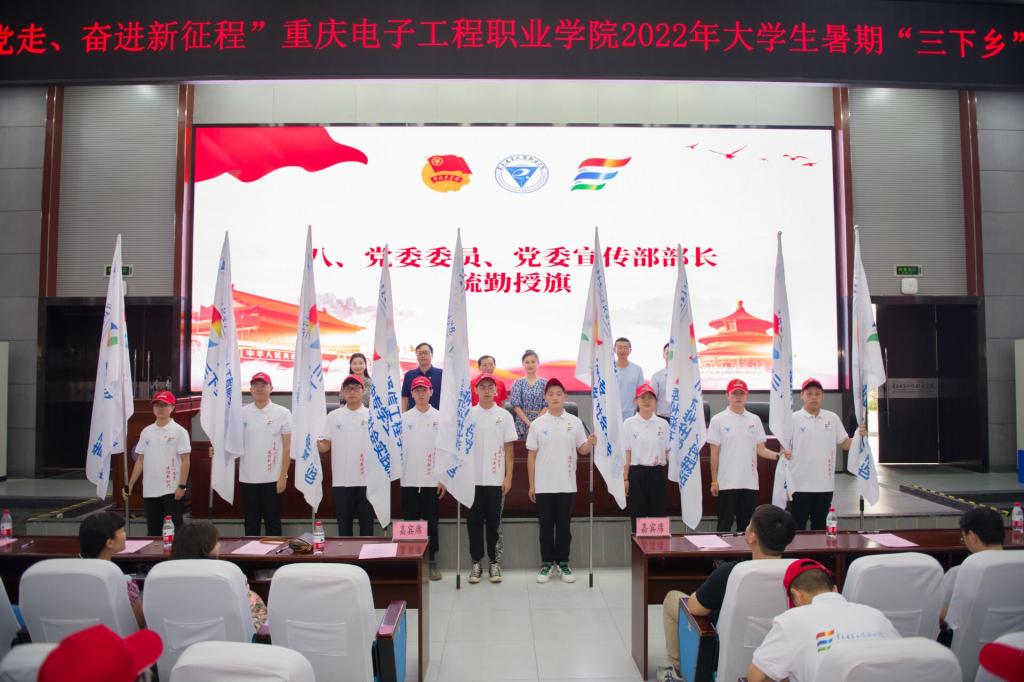 为深学笃用习近平新时代中国特色社会主义思想,深入学习宣传贯彻习近平总书记在庆祝中国共产主义青年团成立100周年大会上的重要讲话精神,引导和帮助广大青年学生上好与现实相结合的“大思政课”,在社会课堂中“受教育、长才干、作贡献”坚定信念听党话、跟党走,以优秀的成绩迎接党的二十大胜利召开。7月4日,重庆电子工程职业学院“喜迎二十大、永远跟党走、奋进新征程”大学生志愿者暑期文化科技卫生“三下乡”社会实践活动出征仪式在博远厅顺利举行。党委副书记龚小勇,党委委员、党委宣传部部长疏勤,党委学工部部长何光明,安全管理处处长谯新风,马克思主义学院党总支书记韦代周,校团委书记袁玉刚出席本次会议。会议由校团委副书记范可佳主持。