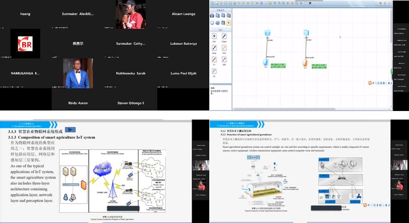 本次观摩课程为《物联网工程导论》和《数据网组建与维护》,也是中乌鲁班工坊师资培训班第一学期课程的拓展,授课教师为电子与物联网学院的吴娟博士、通信工程学院的黄天雨工程师。通过使用网络平台zoom开展线上培训,授课效果显著,获得听课教师一致认同及好评。