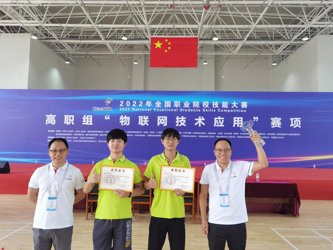 8月24日,2022年全国职业院校技能大赛“物联网技术应用”赛项(高职组)在山东信息职业技术学院滨海校区举行。经过两天激烈的竞技,我校电子与物联网学院学生从全国58支参赛队伍中脱颖而出,斩获一等奖。