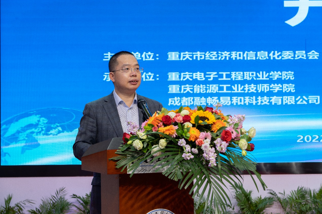 出席开幕式的有重庆电子工程职业学院校长聂强教授、重庆市经济和信息化委员会副主任罗莉、重庆市人力资源和社会保障局副局长苏静等领导嘉宾。