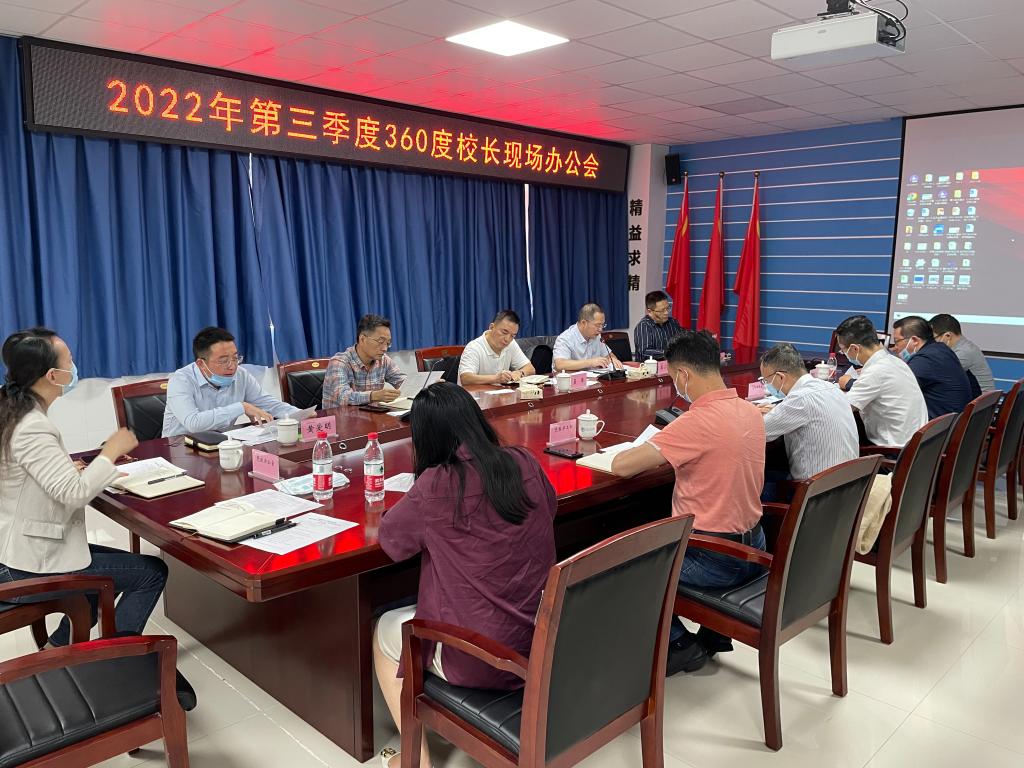 2022年9月28日,学校在12栋507A会议室召开了第三季度360°校长现场办公会,党委副书记龚小勇主持会议,校长聂强、副校长刘成俊、副校长冉学农、副校长黄爱明,党政办公室、党委学生工作部、教务处、图文信息中心、后勤保障处负责人及大一、大二、大三、大四学生代表共计30余人参加会议,会议围绕“了解并解决学生在学习生活过程中的遇到的困难”展开。