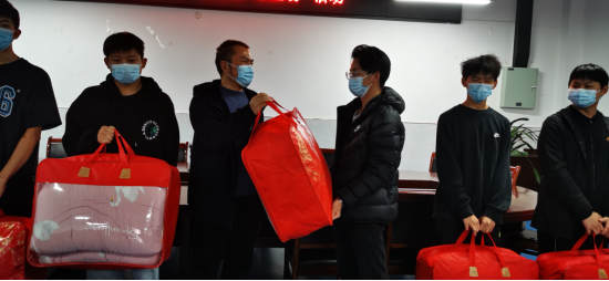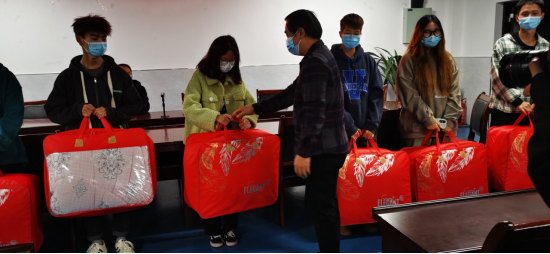 在学校以楼栋为管理网格的疫情防控工作开展中,网格管理员和辅导员在走访看望学生时发现,部分同学还在使用夏秋季的床上用品,经了解主要是因为当前疫情的影响,无法及时更换。经辅导员班主任老师深入宿舍摸排了解,全院有20余名同学存在此类情况。为及时精准的帮助同学们解决实际困难,更好的开展学习生活,保持健康状态,积极应对疫情,在学工部领导的指导下、在华达公司生活超市负责人的大力支持下,连夜为同学们组织了御寒用品,学院及时的将这批用品发到了急需的同学们手上。