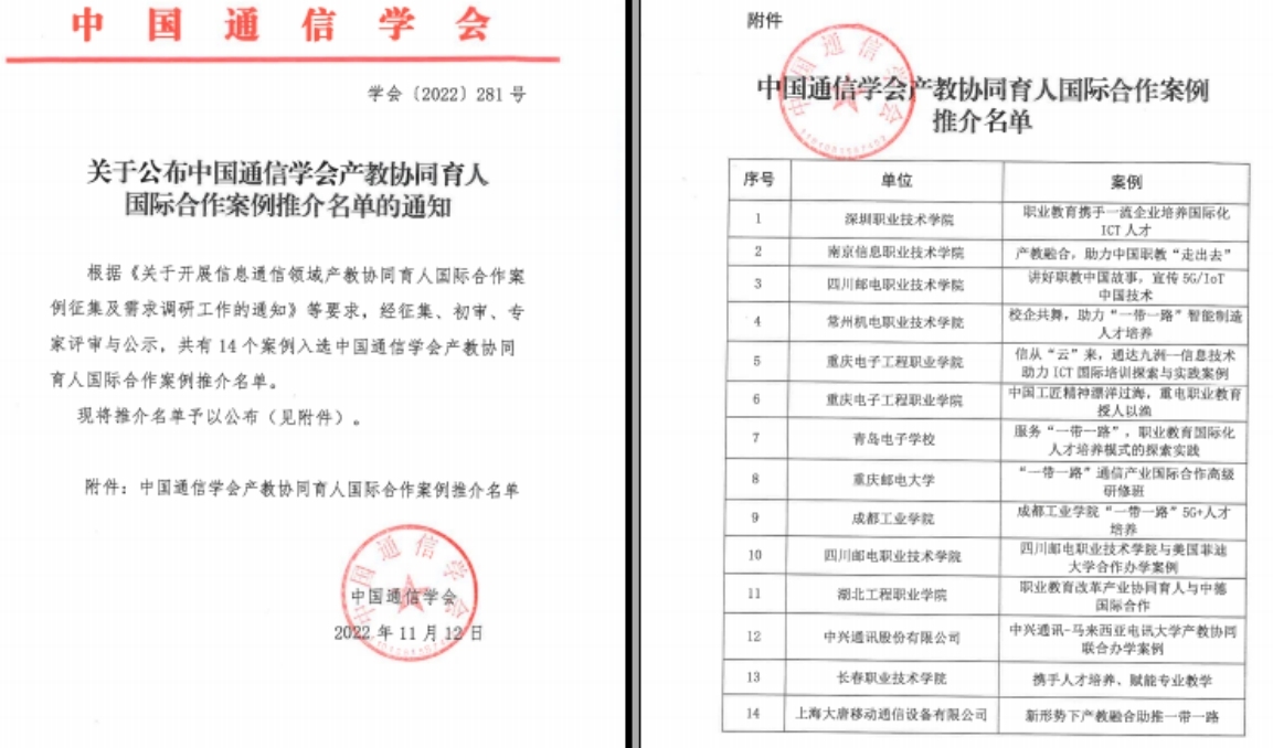 本次能够入选“中国通信学会产教协同育人国际合作案例推介名单”并进行现场展示,向全体业界展示了重庆电子工程职业学院中乌鲁班工坊的技术技能开云电子平台_开云(中国)模式,证明了重电中乌鲁班工坊在深入推进境外合作办学,中向国外输出优秀的职业教育服务,宣扬我国的“工匠精神”做出了积极的贡献,接下来重电中乌鲁班工坊将继续稳步推进和扎实实施。