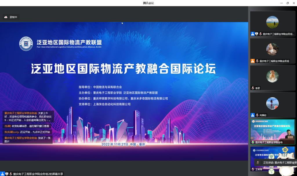 2022年11月27日,泛亚地区国际物流产教融合国际论坛暨跨境电商物流培训线上举行,此次论坛是由中国物流与采购联合会指导,重庆电子工程职业学院、泛亚地区国际物流产教联盟主办,重庆梓银数字科技有限公司、重庆米多奇国际物流有限公司协办,上海快仓自动化科技有限公司支持。36个企业和15个院校的代表参加本次论坛。