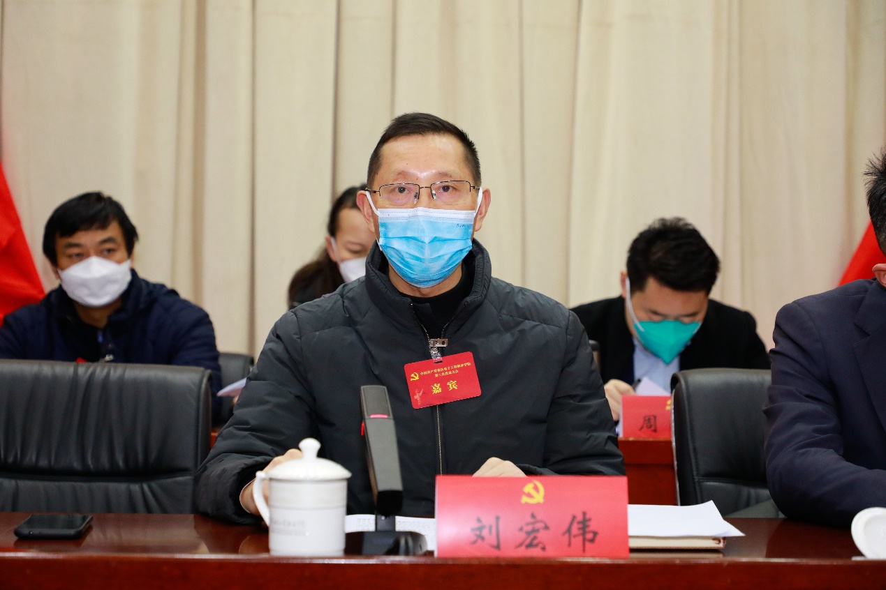 刘宏伟代表市委教育工委、市教委向大会的召开表示热烈的祝贺,并充分肯定了重庆电子工程职业学院党委的工作成绩。他对学校未来发展提出几点要求:一是强化政治引领,加强党的全面领导,为学校事业发展提供坚强保障;二是坚持内涵式发展,完善治理格局,培养担当民族复兴大任的时代新人;三是优化顶层设计,彰显办学特色,在服务经济社会发展中贡献新力量。他表示,当前重庆电子工程职院正处在大有可为、大有作为的重要战略机遇期,市教委将继续为学校新一轮的改革发展创造条件,提供服务。希望重庆电子工程职院的广大党员干部、师生员工,在学校新一届党委的领导下,以习近平新时代中国特色社会主义思想和党的二十大精神为指引,以“双高”建设为引领,以改革创新的精神、真抓实干的作风,为把学校建设成为特色鲜明的电子信息类职业技术大学而不懈奋斗。