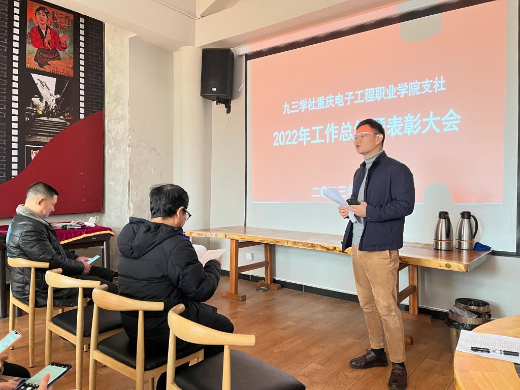 1月7日,九三学社重庆电子职业学院支社在三河村召开2022年度工作总结暨表彰大会,九三学社沙坪坝区委副主委杨青山和办公室主任刘婷婷出席了大会。会议由九三学社重庆电子工程职业学院支社副主委王希琼主持。