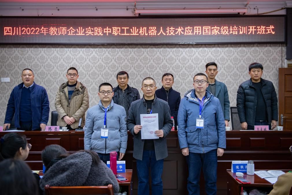 2月20日,四川省2022年公共基础课教学能力提升高职信息技术、教师企业实践中职工业机器人技术应用国家级培训班在我校南校区1-101室开班,国培基地办主任、培训与继续教育学院院长莫绍强,人工智能与大数据学院党总支书记吴焱岷,智能制造与汽车学院院长叶勇,以及来自四川省中高职院校的43名学员参加开班式。开班式由国培基地办副主任张亚主持。