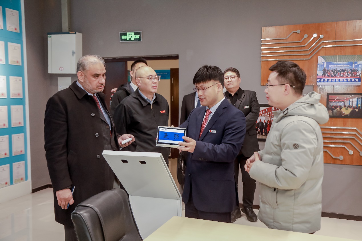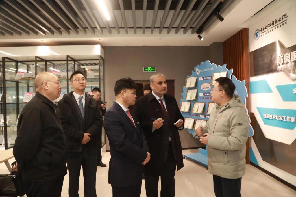 校长聂强陪同巴方和相关单位参观了我校智能制造与汽车学院、通信工程学院、电子与物联网学院等二级单位集训基地。深入实习实训一线就技能大赛、开云电子平台_开云(中国)、科技创新等进行考察交流,分享在相关领域的有益做法和经验。