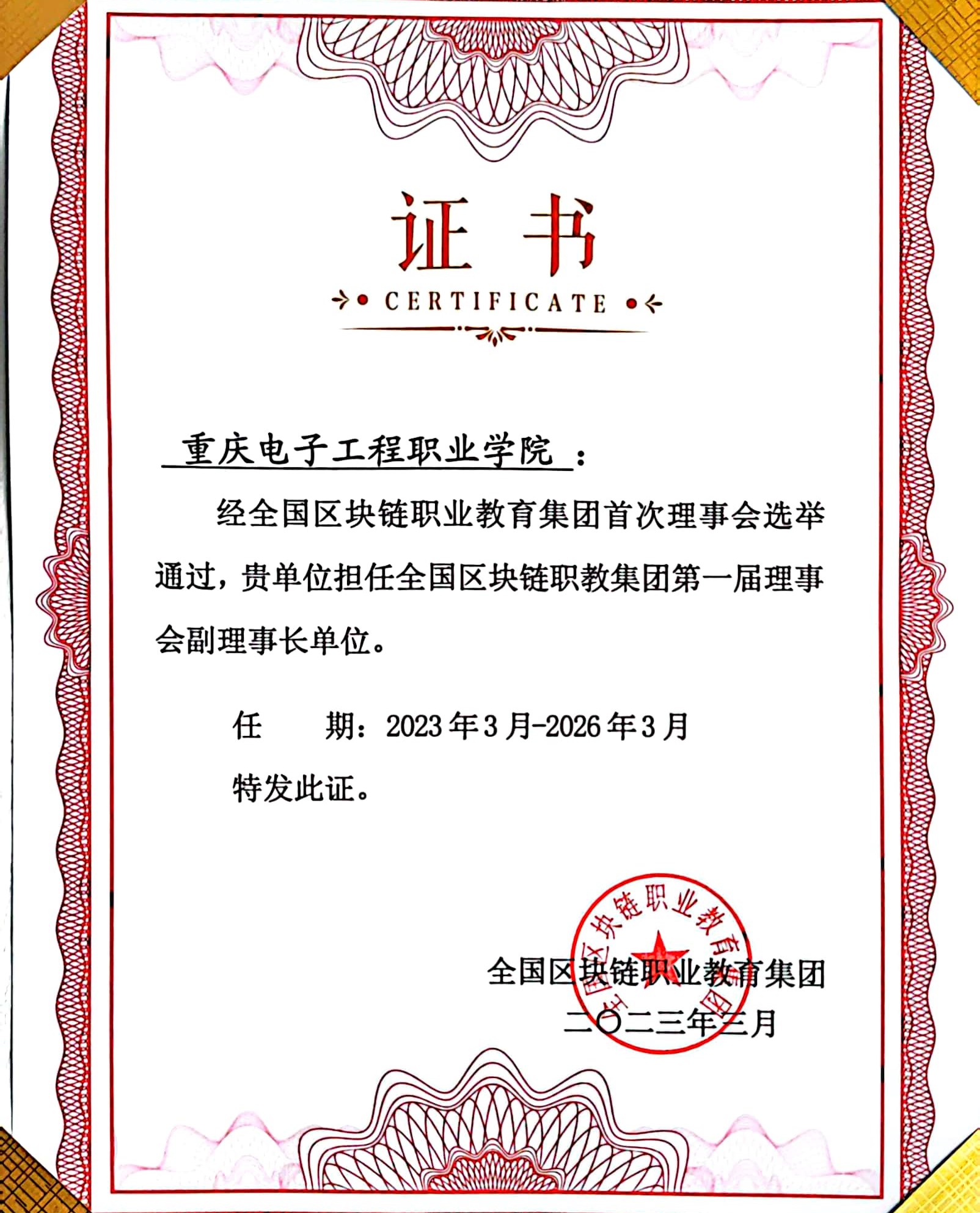 会议审定了集团章程,选举了理事长、副理事长单位、理事和成员单位等。作为目前全国开设区块链技术应用专业的26所院校之一,区块链技术应用专业国家教学标准制定单位,我校当选为副理事长单位。