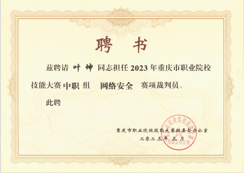 图3 叶坤老师裁判聘书
