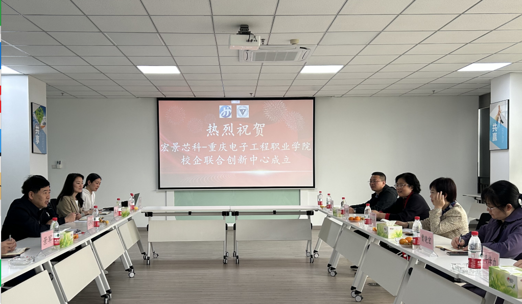 4月3日,重庆电子工程职业学院副校长谢义华带领通信工程学院党总支书记曾晓宏、院长陶亚雄、院长助理林勇、专任教师罗兴宇和冉烽力一行到重庆宏景芯科微电子技术研究院有限公司,出席“宏景芯科—重庆电子”校企联合创新中心暨教师企业脱产顶岗实践启动仪式。