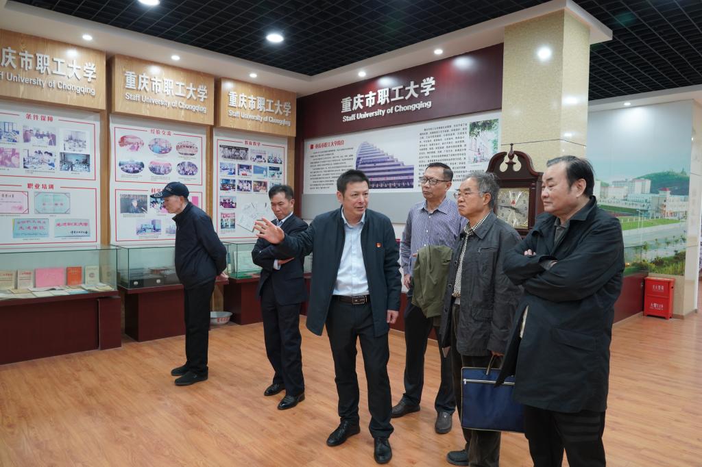 座谈会后,唐玉林校长带领大家一起参观了重庆城市职业学院校史馆、陈志军大师工作室、航空学院等,参观过程中,双方在两校历史沿革、事业发展历程、远景目标等方面深度沟通,互相比照,更进一步加深了对新修订的《职业教育法》提到的国家大力发展职业教育、推进职业教育改革、提高职业教育质量、增强职业教育适应性的理解,同时结合党的二十大报告中对于职业教育的定位目标,老同志们对我校抢抓机遇、迎难而上,争创职教本科等一系列工作给予了充分肯定,同时也提出了良好的建议,希望学校充分发挥自身优势,抢抓发展机遇,在新的发展阶段实现更大作为,将学校建设得更美好。