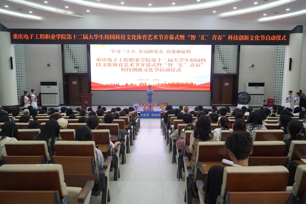 为深学笃用习近平新时代中国特色社会主义思想,深入学习宣传贯彻习近平总书记在党的二十大上的重要讲话精神和关于培养科技创新人才的重要指示精神,围绕落实立德树人根本任务,坚持将理想信念教育融入大学生校园科技文化艺术体育活动,着力培养德智体美劳全面发展的社会主义建设者和接班人,团结带领广大青年学生在党的二十大开局之年展现青春风采、做出积极贡献。2023年4月3日,重庆电子工程职业学院第十二届大学生校园科技文化体育艺术节开幕式暨“智‘汇’青春”科技创新文化节启动仪式在学校博远厅举行。