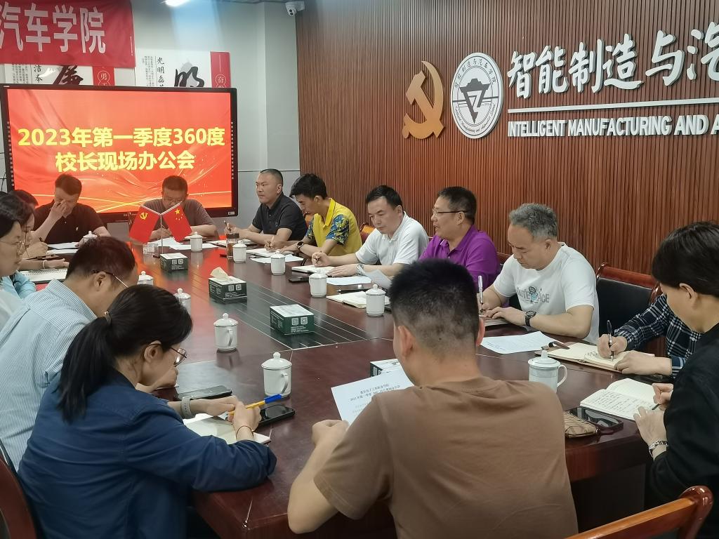 2023年4月18日,在全校开展学习贯彻习近平新时代中国特色社会主义思想主题教育之际,为了深入基层一线,扎实开展调查研究,学校在16栋228会议室召开了第一季度360度校长现场办公会,副校长冉学农主持会议,校长聂强、党政办公室、党委学生工作部、教务处、后勤保障处、智能制造与汽车学院、智慧健康学院相关负责人及部分老师、学生代表及共计40余人参加会议,会议围绕“双高建设、立德树人、产教融合、三教改革、科技创新、社会服务”等调研主题展开。