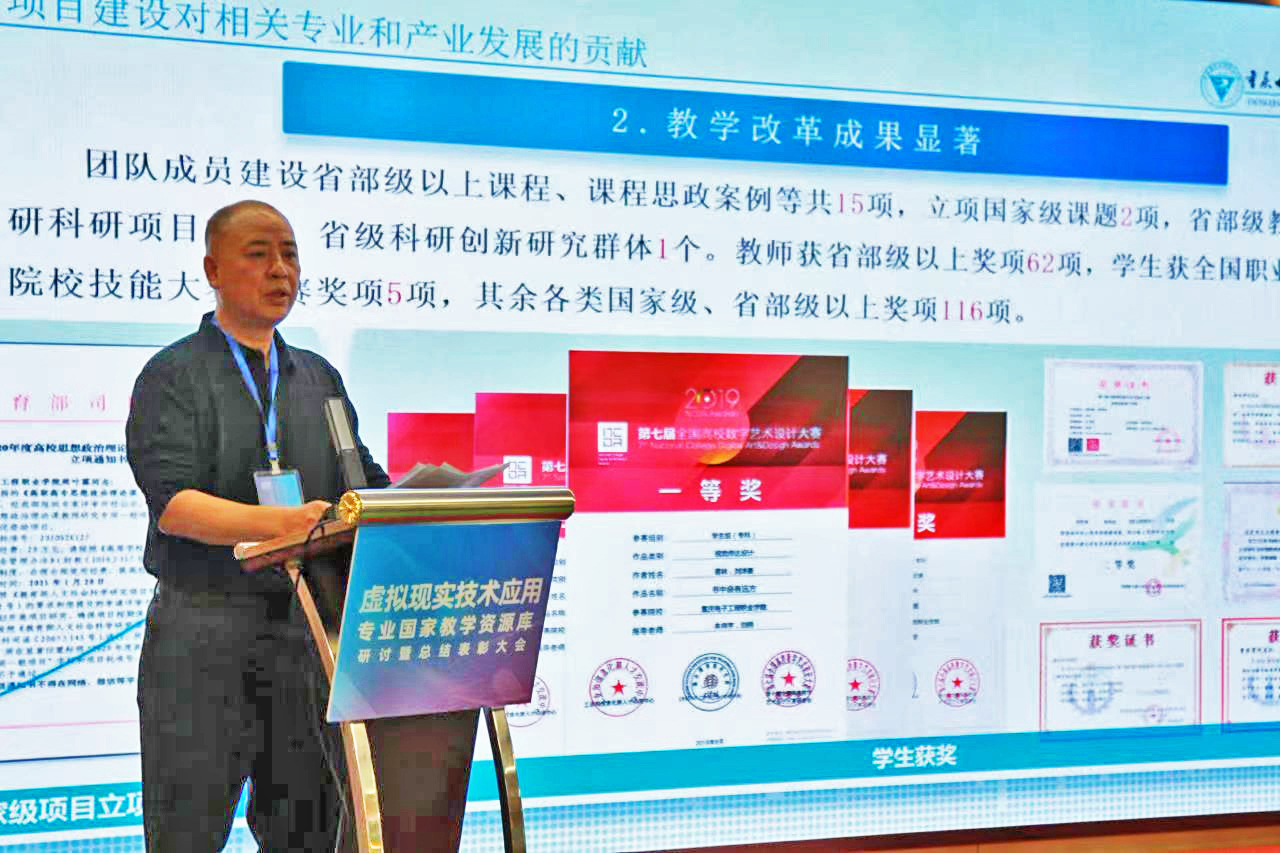 我校数字媒体学院资源库参建教师牟向宇、代文豪分别发表了题为《课程建设助推教学能力提升的经验分享》、《信息技术助力传统文化提升教师素质素养的探索与实践》的主旨发言;数字媒体学院副院长谢永代表资源库项目组对虚拟现实技术应用专业国家教学资源库后续推广应用工作做了部署。