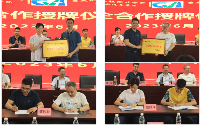 随后,校企双方分别签订党建联盟协议、校企合作项目协议书和支部结对共建协议,并为高技能人才培训基地和校外实习实训基地授牌。