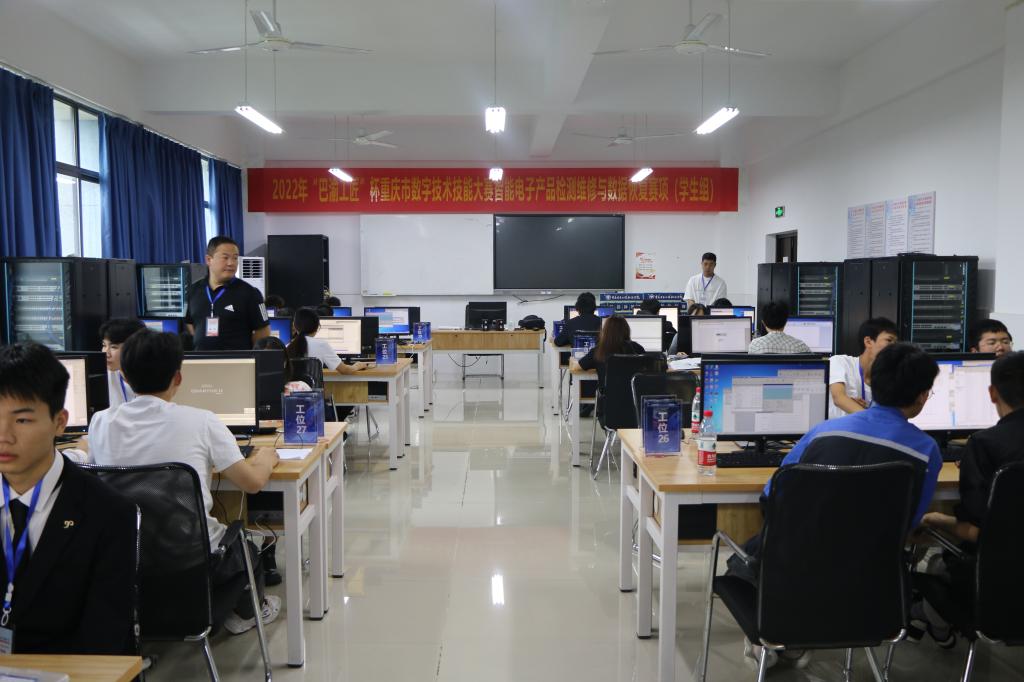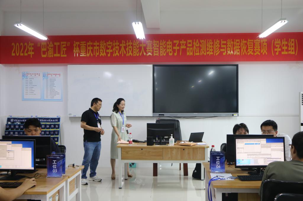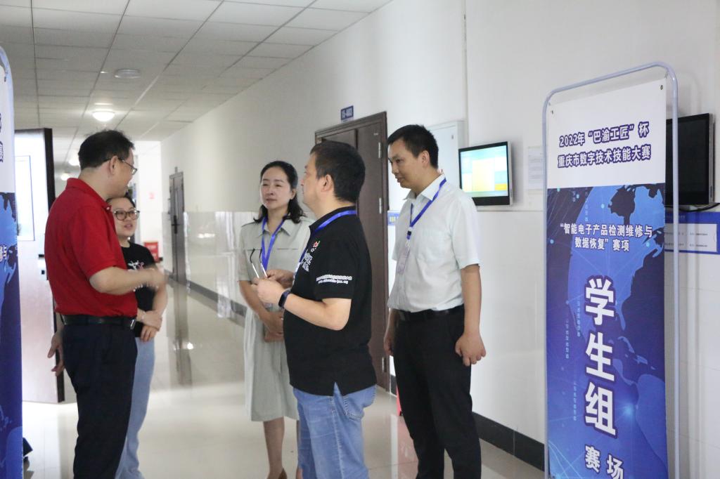6月18日,我校承办的2022年“巴渝工匠”杯重庆市数字技术技能大赛“智能电子产品检测维修与数据复”赛项圆满结束,本次比赛由重庆市发展和改革委员会、重庆市经济和信息化委员会、重庆市人力资源和社会保障局、重庆市北碚区人民政府和重庆市永川区人民政府共同主办,比赛当天重庆市职业技能鉴定指导中心副主任王华源亲临现场观摩比赛,并对该赛项表示了高度的肯定。