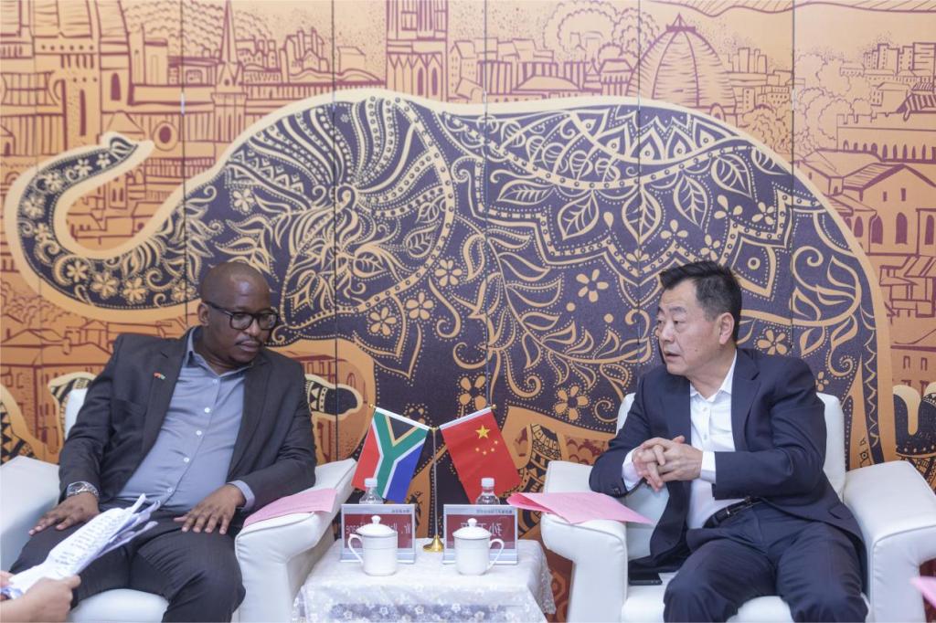 图5:党委书记孙卫平与南非豪登省副省长奇洛恩交流