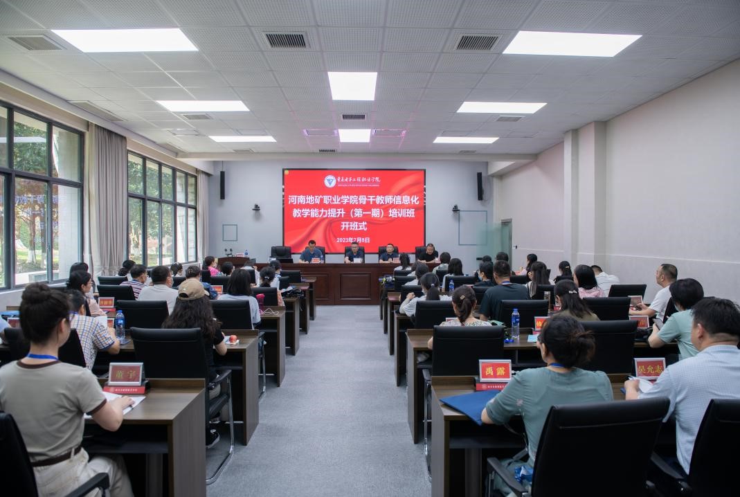 2023年7月8日下午,河南地矿职业学院骨干教师信息化教学能力提升(第一期)培训开班式在我校国培基地博学厅举行,河南地矿职业学院党委委员、副校长冯敏,我校培训与继续教育学院院长、基地办主任莫绍强,以及河南地矿职业学院的61名教师参加开班式,开班式由基地办副主任张亚主持。