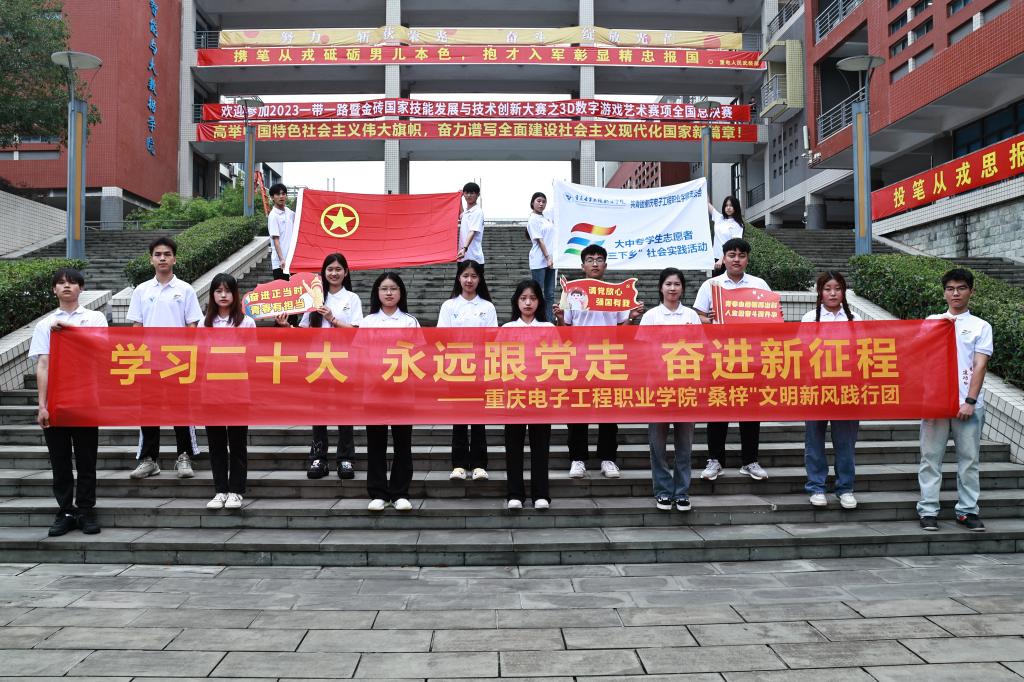 为深入学习宣传贯彻习近平新时代中国特色社会主义思想和党的二十大精神,深入贯彻落实市委六届二次全会精神,切实发挥共青团作为广大青年在实践中学习中国特色社会主义和共产主义的学校作用,引导和帮助广大青年学生在与现实相结合的“大思政课”中“受教育、长才干、作贡献”,引领青年大学生立志做有理想、敢担当、能吃苦、肯奋斗的新时代好青年。2023年7月3日,重庆电子工程职业学院“红鹰”乡村振兴促进团和“桑梓”文明新风践行团分别前往重庆市石柱县南宾街道河坝村和重庆市巫山县官渡镇杨林村开展暑期“三下乡”社会实践活动。