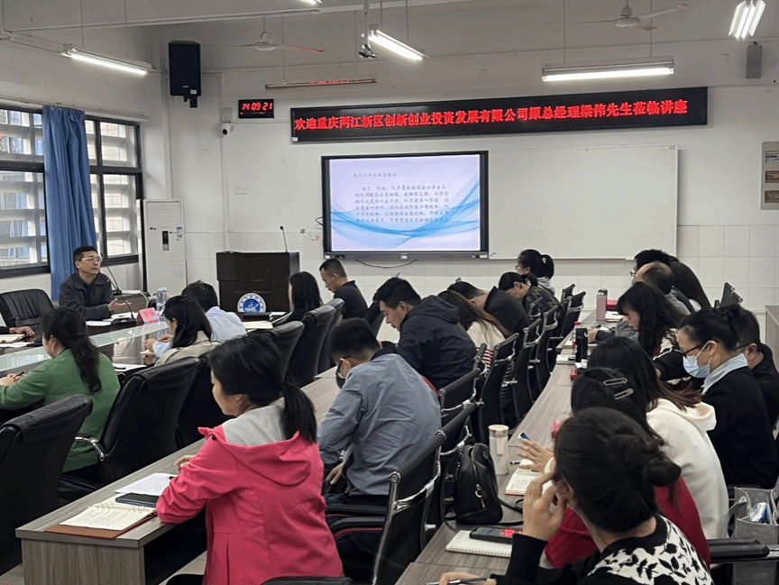 2023年10月26日14:00,建筑与材料学院邀请了重庆两江新区创新创业投资发展有限公司原总经理梁伟先生,在学院6202会议室为全院教师做《当前全市科技资源布局与重点发力支持方向》讲座。梁伟,正高工,享受国务院政府特殊津贴,重庆市工程师协会专家委员会副主任,重庆市中小企业专家委员会委员,重庆市老科学技术工作者协会副会长。