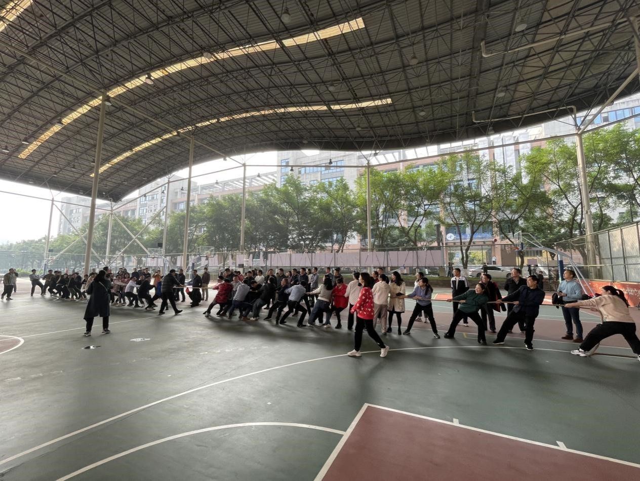 趣味运动会设置拔河、羽毛球、乒乓球、投篮共四个赛项,全体会员分为三个小组开展活动。旨在营造文明健康、昂扬向上的文化精神,提升教职工凝聚力,推动分工会会员身心健康发展。