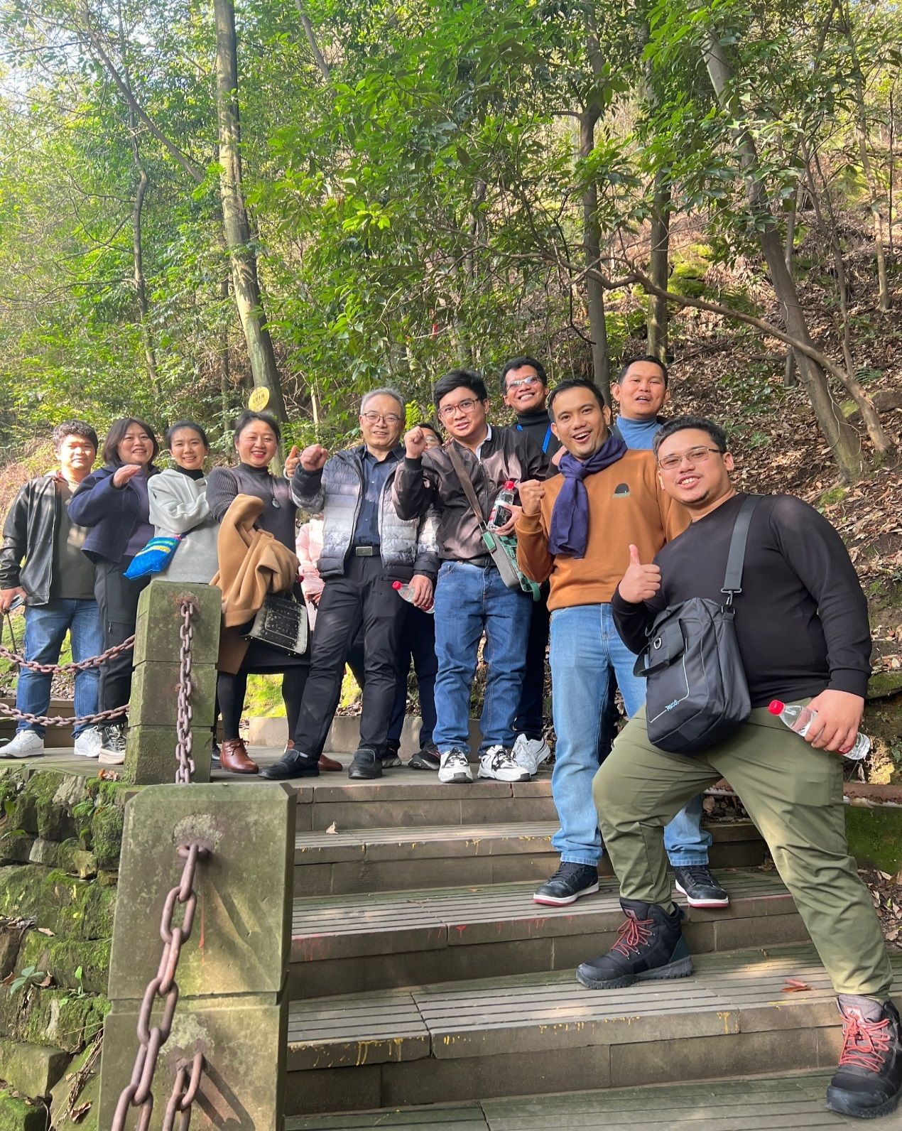 参加团建拓展活动的130名分工会会员统一乘车前往拓展训练基地—重庆市北碚区缙云山开展登山健身系列活动。在登山途中,大家呼吸着清新自然的空气,欣赏着十二月的山城景色和隐于青山间的水村山郭,体验着运动带来的激情和快乐,共同攀登狮子峰,到达峰顶,登山远眺,周围的美好景色尽收眼底,让会员们得到了放松,享受到了拓展活动的愉悦。最后,带着满满收获的全体会员合影留念,情不自禁地记录了自己的所学、所思、所感。