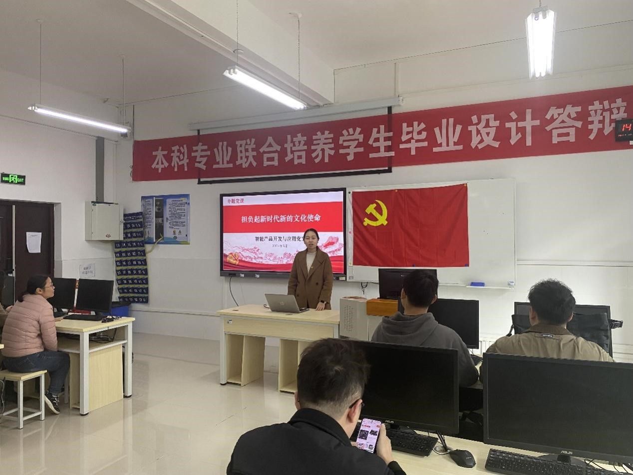 为深学细悟习近平文化思想,切实担负起新时代新的文化使命。近日,电子与物联网学院智能产品开发与应用党支部在12206开展题为“担负起新时代新的文化使命”专题党课。党课由支部书记周莹同志讲授,全体支部党员参加。