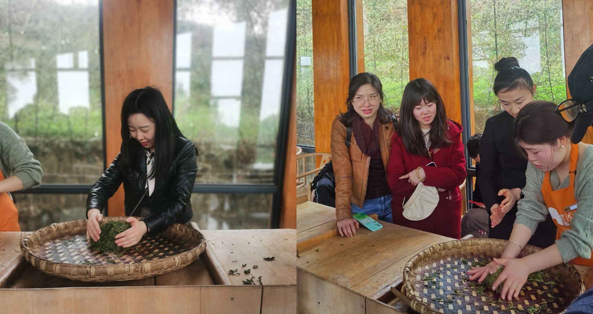 活动当天,老师们兴致勃勃地来到茶园,在专业人士的指导下,亲身体验了采茶的乐趣。大家穿梭于山坡茶树间,细心挑选着嫩绿的茶叶,感受着茶叶在指尖的轻盈与鲜活。随后,大家还参与了炒茶、制茶的过程,亲手将采摘的茶叶加工成可品尝的佳茗,这一环节不仅增长了知识,也增加了实践的乐趣。
