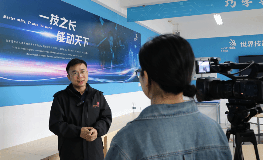 周渝曦作为赛项技术顾问,对光电技术项目进行了介绍:“光电技术项目是光电技术工程/技术人员利用相关技术技能,满足光电产业链中‘产品制造-应用实施-维护优化’的岗位需求,以达到人们对智能化节能光环境需求的技能竞赛。”同时周教授就赛项筹备、选手遴选等问题,向记者一一进行解答。