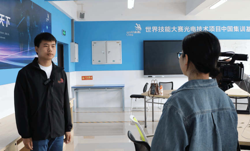 4月12日,重庆日报、华龙网、西部国际传播中心至我校光电基地,就第二届“一带一路”国际技能大赛光电技术项目备赛情况进行了深入采访。记者们深入备赛现场,与参赛选手、教练以及相关人员进行了面对面的交流,详细了解了选手们的训练情况、备赛状态以及遇到的挑战和解决方案。我校教师周渝曦、李小松,学生商峻宁,接受采访。