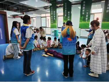 随后,智慧健康学院萤火虫志愿者们还为小朋友们带来了一堂应急救援知识普及课,课堂上小朋友们学习了心肺复苏和气道异物梗阻急救知识等急救小知识。
