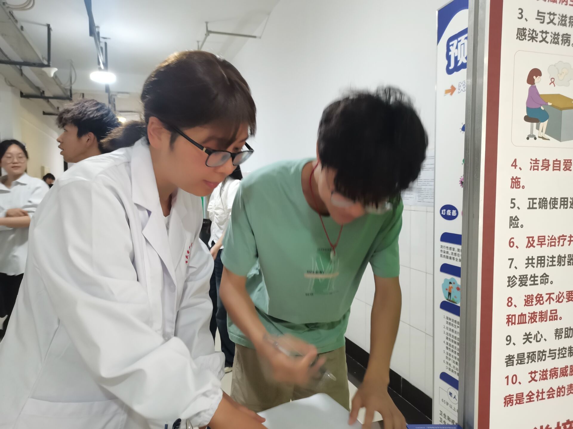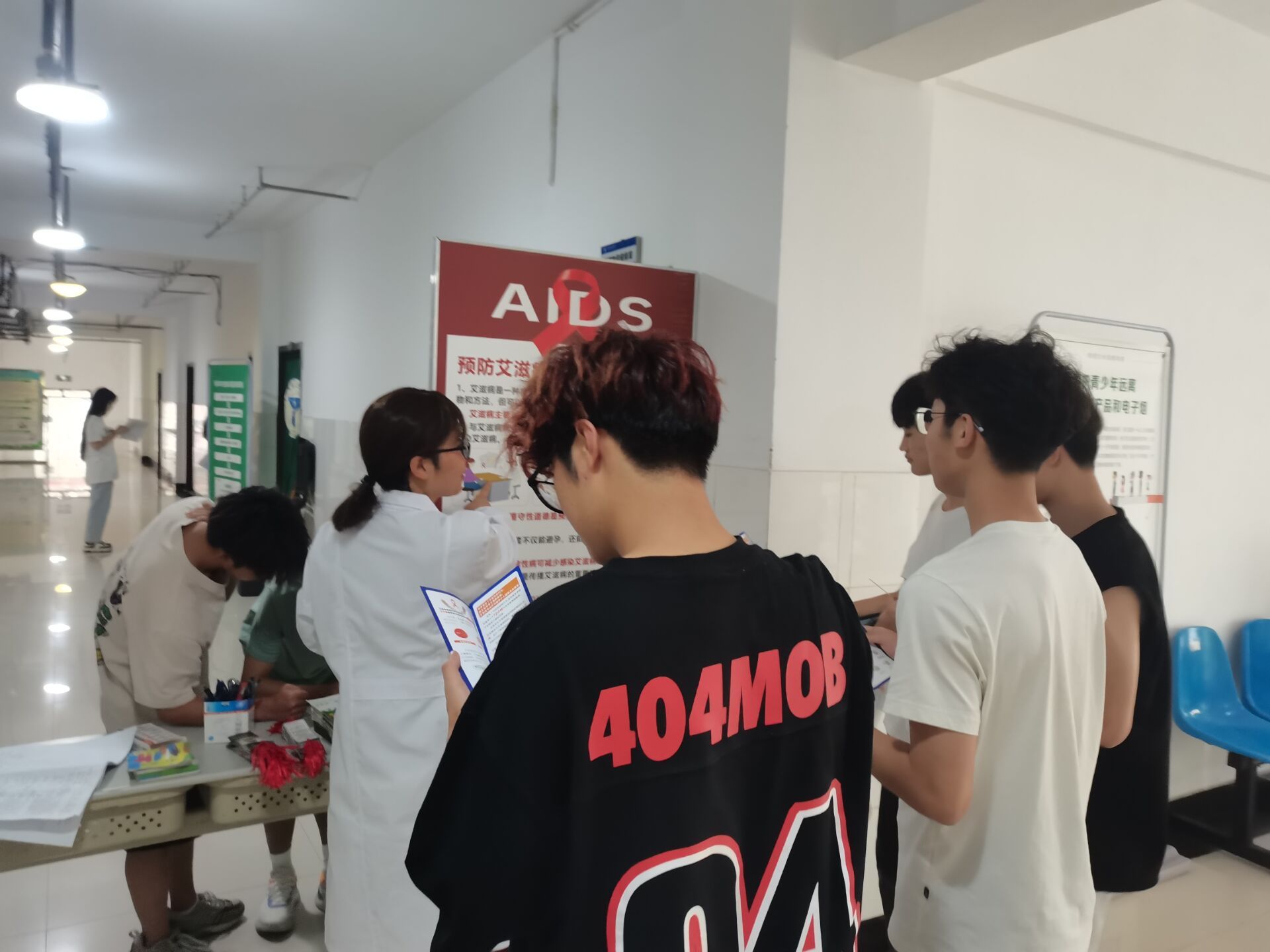 为营造学校知艾防艾的良好氛围,本次活动通过LED屏滚动播放防艾宣传语 “携手防疫抗艾,向‘零’艾滋迈进-学会保护自己,检测是第一步”、摆放艾滋宣传展板、向活动现场学生发放宣传小册等方式,宣传艾滋病传播途径、预防方式及安全套的正确使用方法等知识,并现场答疑解惑,共计发放艾滋宣传小册105份。
